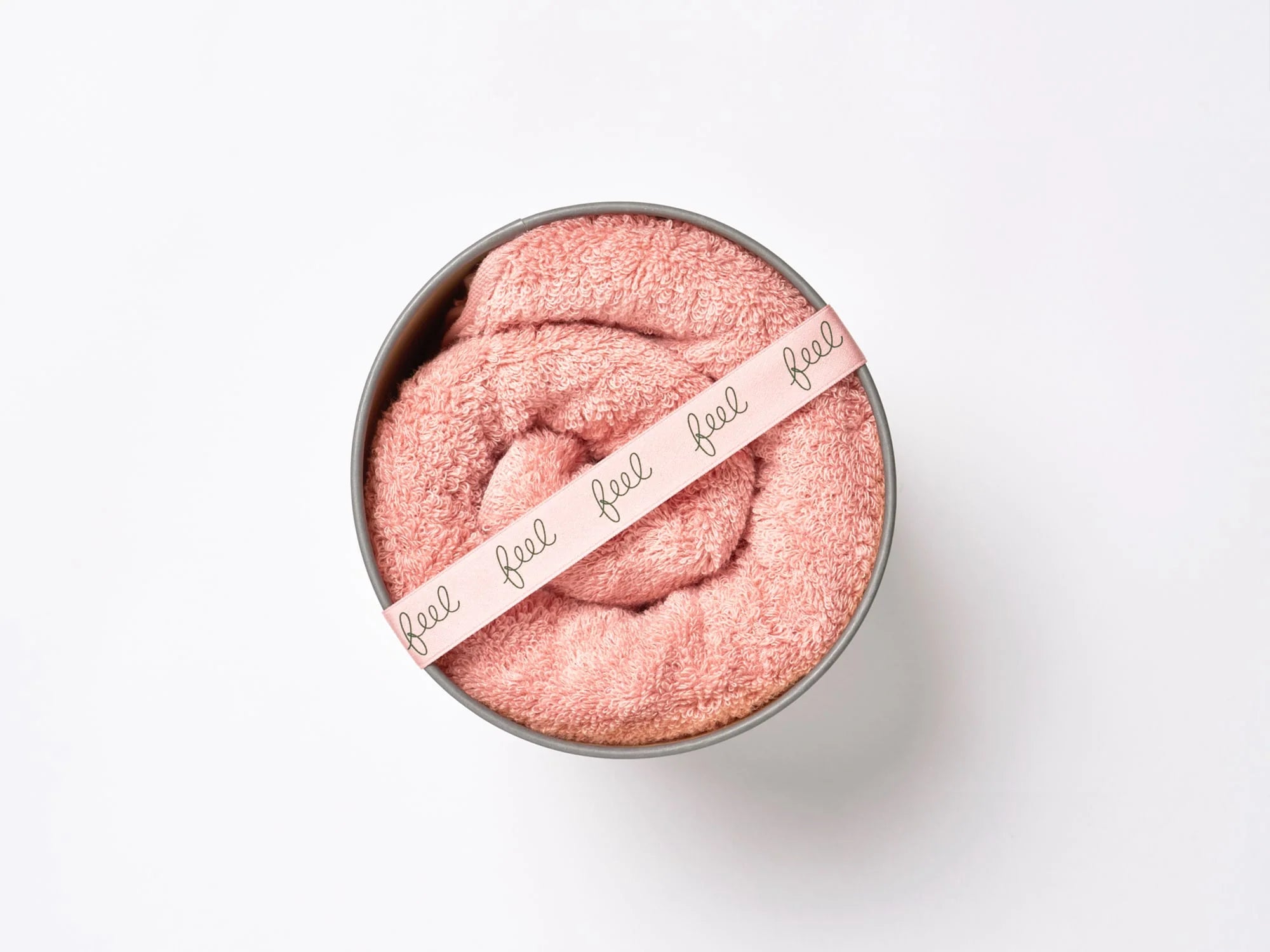 『育てるタオル』シグネチャーライン「feel(フィール)」のバスタオル。軽くて薄いのにボリューム感は大満足。パイルヘム仕様で空気を纏うような軽さ、さらに柔らかさが増し、お風呂上りに包まれたくなる一枚に。 思わず誰かに贈りたくなる、ブランドシンボルの筒型ボックス入りです。