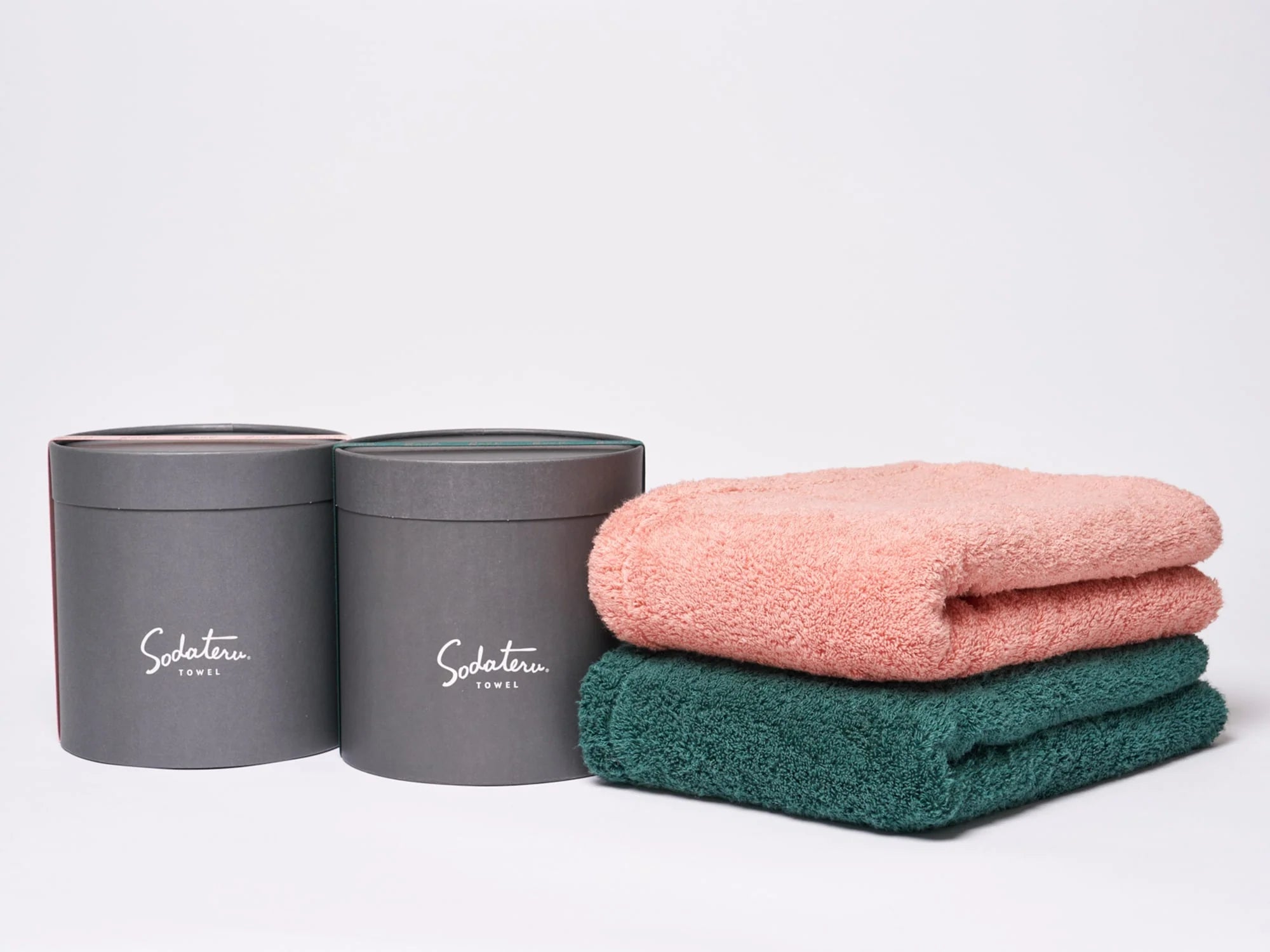 タオルは1枚ずつブランドシンボルの筒型ボックスへロール状にお入れします。