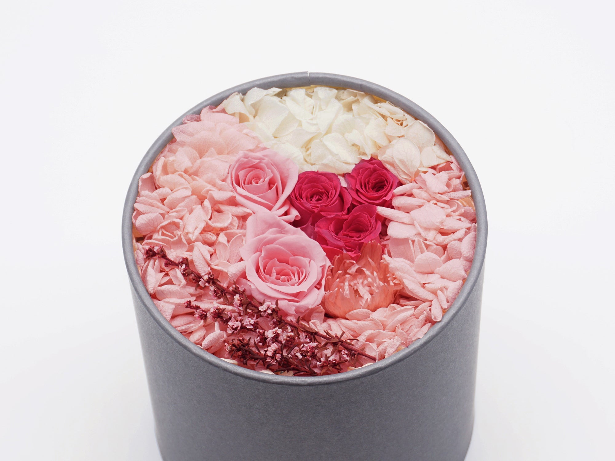 お花が最も美しい時期に加工するため、 花そのもののみずみずしさを保ち、柔らかで、まるで生花のように仕上がります。 枯れることがなく水やりの必要もないことが大きな特徴です。