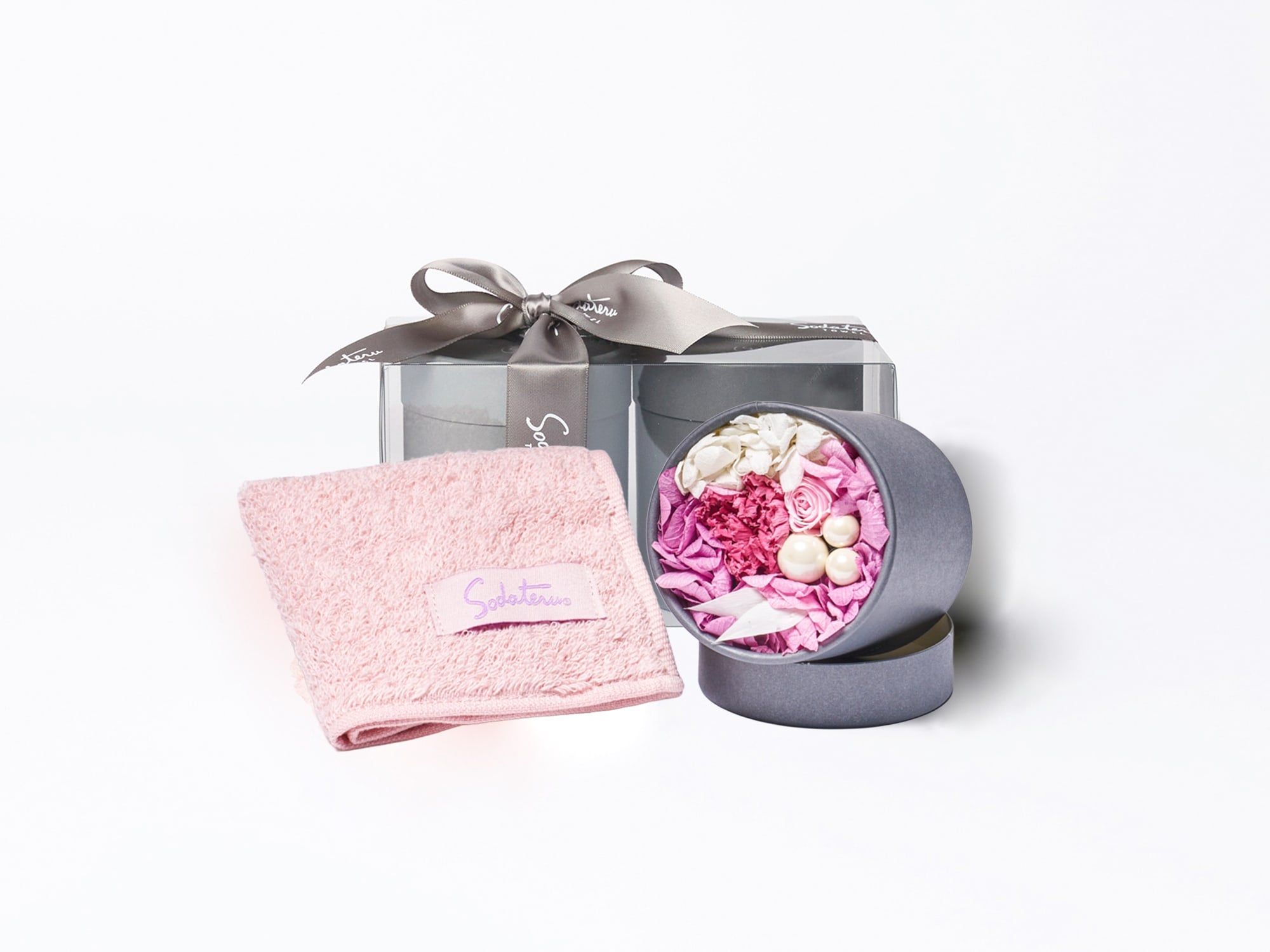 Sセットは、どこへでも持ち歩けるプチハンドタオルと組み合わせたセットです。