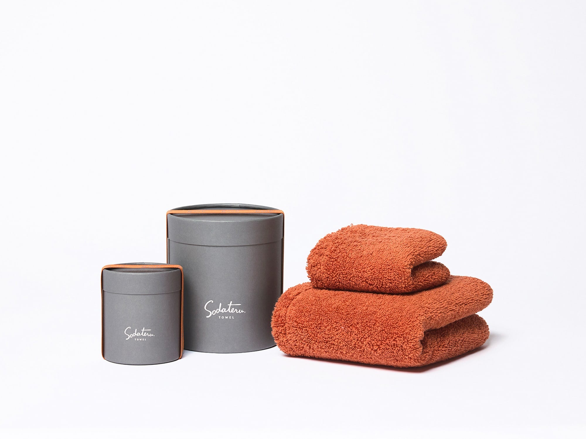 タオルは1枚ずつそれぞれブランドシンボルの筒型ボックス入り。