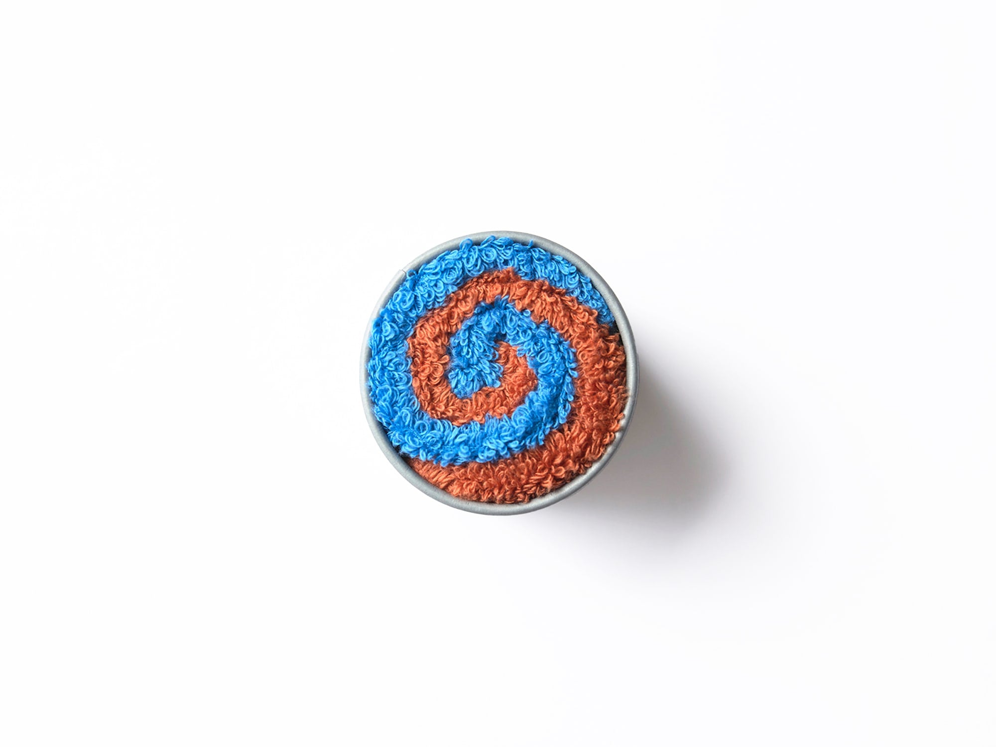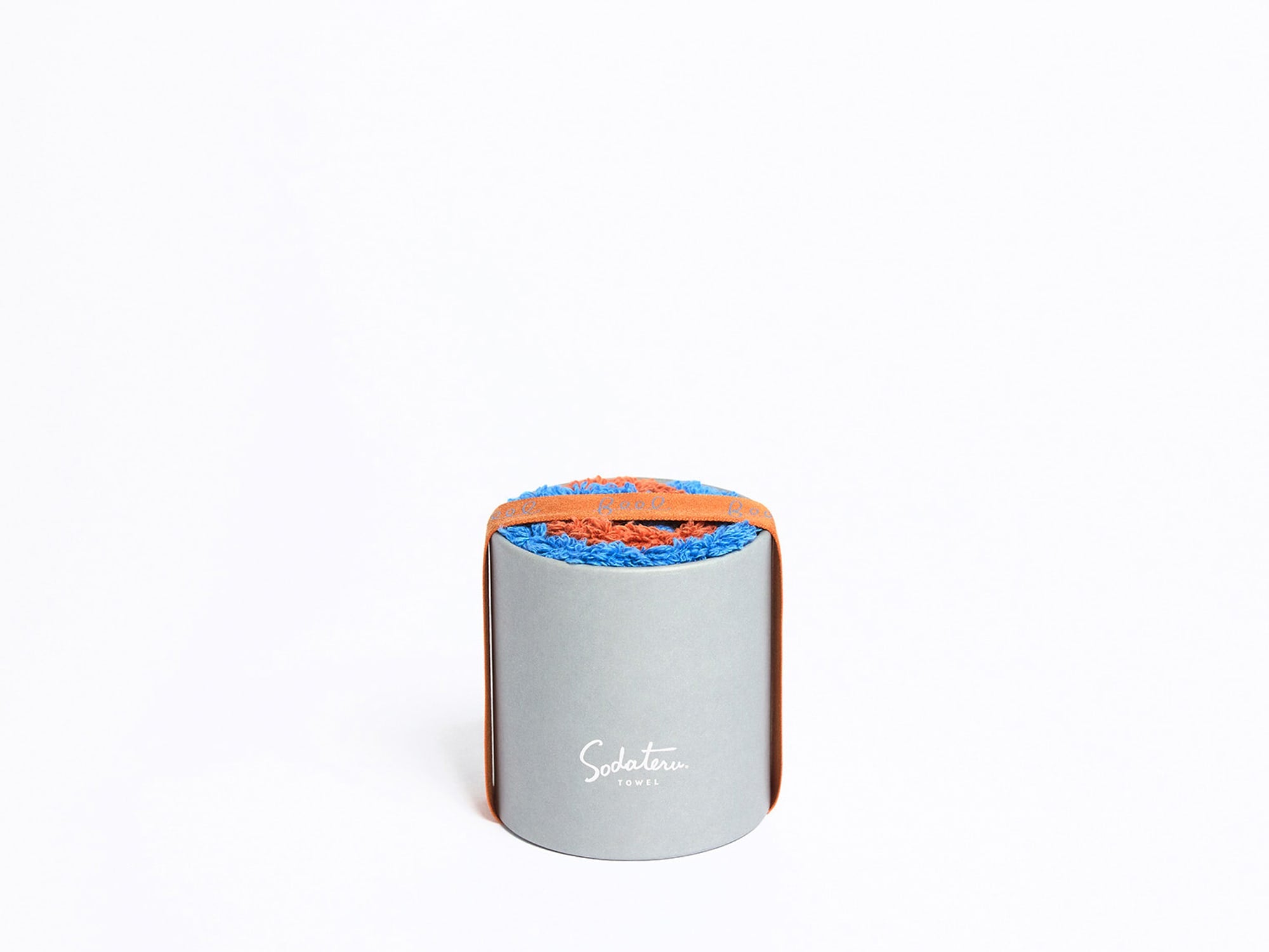 プチハンドタオル2枚を、ロール状に筒形ボックスにお入れします。