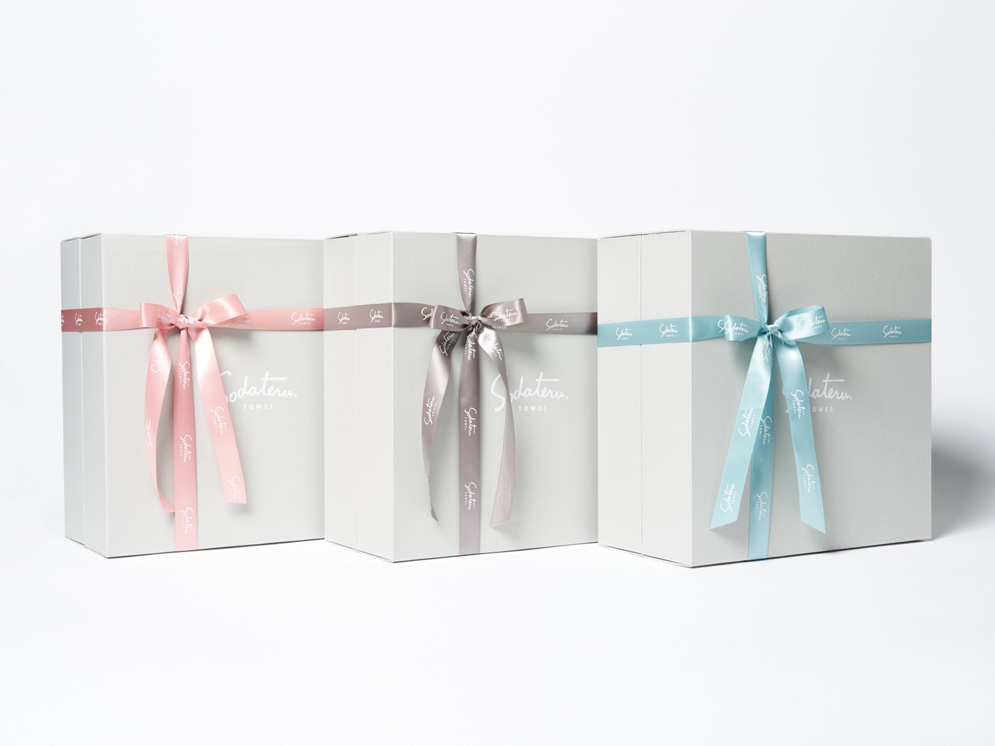 ブランドイメージカラー&ミニマルなデザインの専用ギフトボックスにおまとめします。